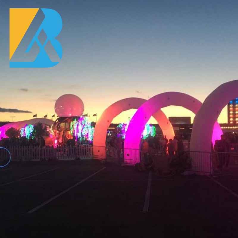 Place of Origin: Guangzhou, China Brand Name: BAI Model Number: BAI-A019 Type: Arch Color: customized Size: 6X3 meters, 8X4 meters or customized Material: oxford fabric Certificates: CE; UL Blower: 220V-240V / 110V-120V ( with matched Plugs accordingly ) Usage: decoration, party, events Accessories: Air blower, some ropes and sandbags, storage packing bag, repair fabric