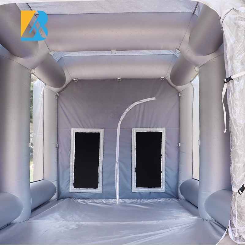 Place of Origin: Guangzhou, China Brand Name: BAI Model Number: BAI-T0094 Type: Tent Color: Silver or customized Size: 3.6X2.9X2.5 Metersor customized Material: oxford fabric Certificates: CE; UL Blower: 220V-240V / 110V-120V ( with matched Plugs accordingly ) Usage: Workshop, Painting art Accessories: 2 Air blowers, some ropes and sandbags, storage packing bag, repair fabric and air filters